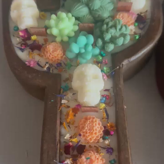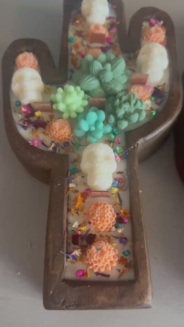 Our saguaro dough bowl candles are extra large candles with a hand-carved wooden base measuring 7 x 12 x 2 inches that comes in all our signature scents as well as custom scents!