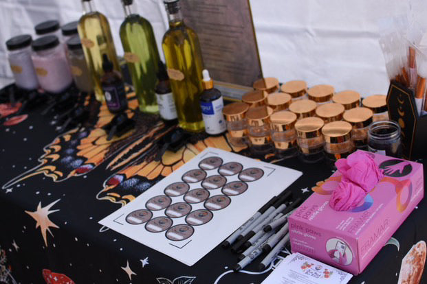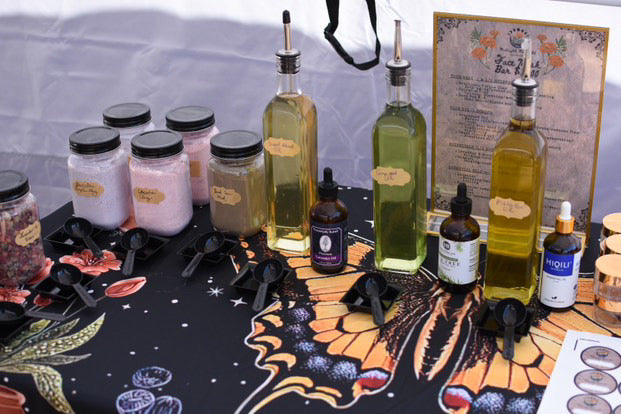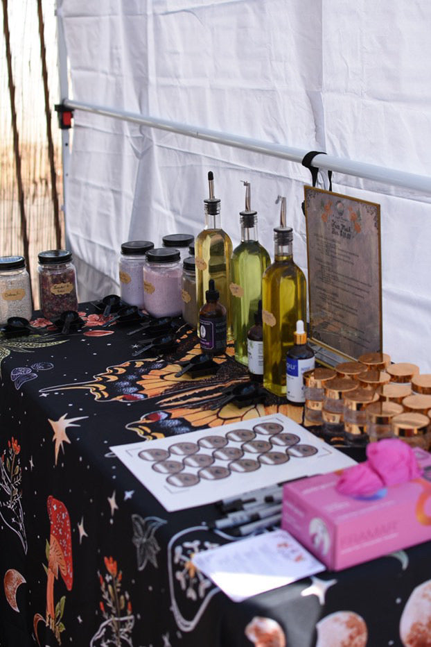 Our interactive in-person customizable face mask bar available at pop-ups and vendor shows as well as to book for private parties! A hosted bar where each person tailors their choice of clay and mud, base oils, botanicals, and essential oils to their individual skin's needs. Each face mask alchemist will create a jar of their own unique face mask they will name and take home that yields approximately 5-6 face applications (depending on preferred consistency). Perfect for bachelorette parties, Galentine's, and luxurious nights in! Email for price quotes.